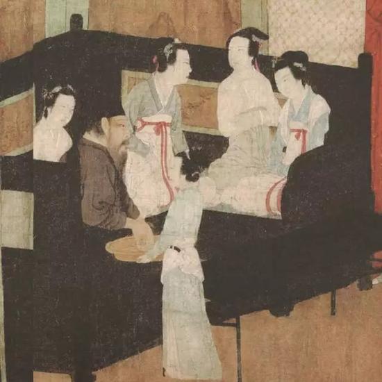 这幅画的主题是描写南唐的中书舍人韩熙载在做官时期,平常生活中富有戏剧性的一段故事。