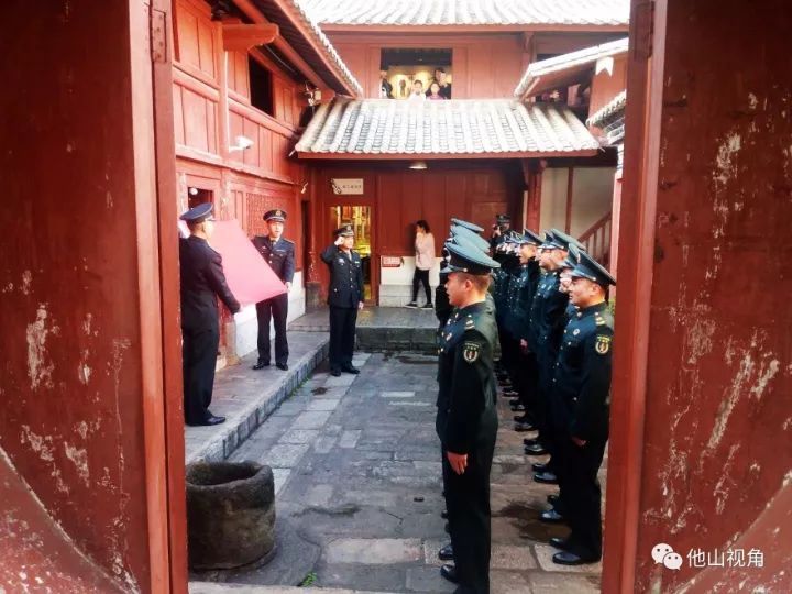 此时此刻,聂耳故居木楼下,一队解放军官兵,列队整齐,器宇轩昂,面朝镰刀铁锤红旗,向上举握右拳,掷地有声,庄严宣誓……