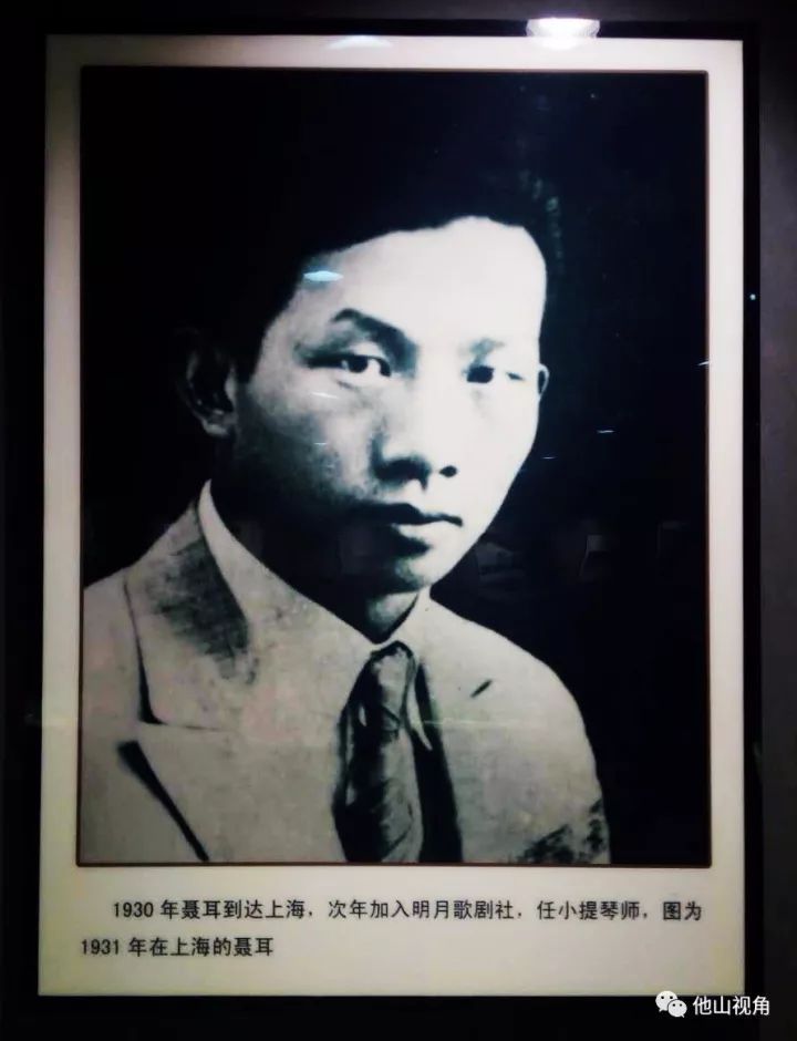 1930年到上海,次年加入明月歌剧社,任小提琴师。此间与音乐家田汉(国歌作词人)相识相知。1932年,经田汉介绍,聂耳加入上海音乐界左联音乐小组。1933年初,聂耳加入中国共产党,田汉就是他入党介绍人之一。从此,聂、田二位信仰一致的艺术家,开启了合作之路。