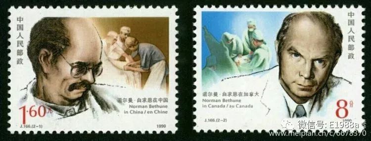 2枚邮票反映了白求恩在加拿大和中国的工作与生活,使观者对白求恩有具体和完整的了解。