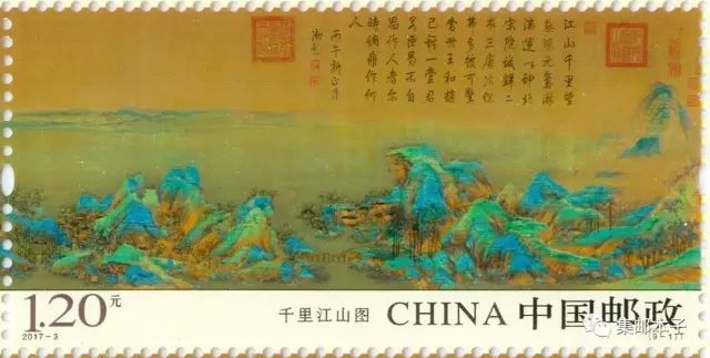 中国邮政定于2017年2月25日发行《千里江山图》特种邮票一套9枚,全套邮票面值为13.20元,以九图连印的方式印刷。同时,中国邮政还将推出长卷版特殊品种。