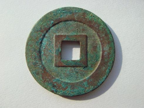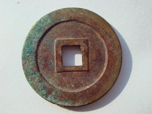 6、这是干坑--沙漠坑钱币。这样的钱币是很很厚的“种母钱”直径都是45--46毫米,厚度4.5--5毫米。应该估计是某干旱地区铸钱工坊出土。大家知道,西汉王莽的铸钱工坊就在内蒙古的和林格尔发现,出土了数万枚货布和其它钱币。