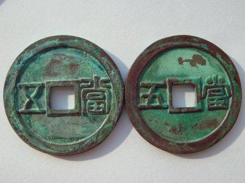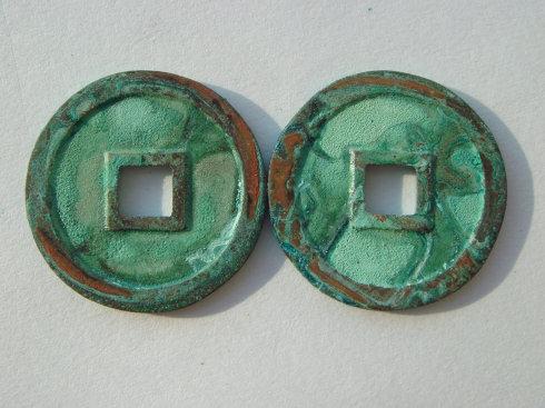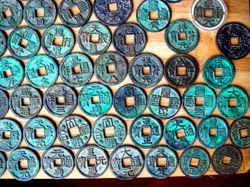 古代钱币的浆色,是什么决定的?我认为地区土壤的颜色浸染是重要的因素。大东北和西北的古代钱币的锈色是,赤橙黄绿青蓝紫,或独一色,或二三色,或者五彩缤纷。锈色突出的我给他们的命名是《水坑黛》、《草原绿》、《东北红》、《沙漠黄》、《褐土黑》,当然,这还要继续研究。但是,我要在这里保留我的命名权。