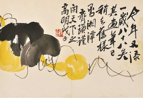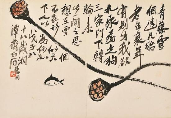 白石墨妙册(其二)十一开之九 齐白石 33×47.8cm 纸本设色 1948年徐悲鸿纪念馆藏
