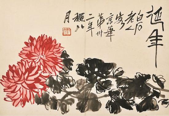 白石墨妙册(其二)十一开之一 齐白石 33×47.8cm 纸本设色 1948年徐悲鸿纪念馆藏