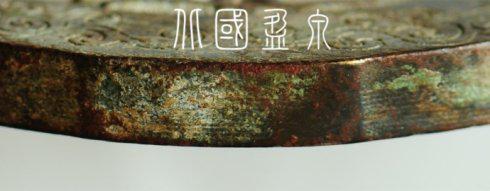 图9、直径72毫米左右的阴刻花纹大钱外缘上的后期加工痕迹(全幅)