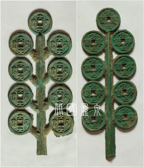 最后,了解了失蜡法铸币的工艺流程,也让我们理解了同版钱币是如何产生的。刚开始笔者也曾认为失蜡法铸币是一钱一模,蜡模都是手工雕刻出来的,不应该有完全相同的同版钱币。当我们了解了用压型制作熔模,将多枚熔模组合在一起浇铸的工艺流程后,以上问题就都迎刃而解了。蜡模不是手工雕刻成的,而是可以用压型批量生产的,存在同版钱币就不足为奇了。