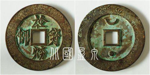 另外,压印阴刻纹饰的模具是可以重复使用的。笔者和泉友们汇集起来的阴刻花纹大钱有不少外郭上的纹饰都是一样的,钱背地张上相同纹饰重复出现的频率更高。这说明不管是钱币外郭纹饰的压印模具还是地张纹饰的压印模具,一经设计制作完成就可以长期备用。铸制新的钱币时会根据钱币本身所要突出宣扬的理念选择相应的纹饰搭配组合。这也应该是不将压印纹饰的功能固定到前面所说压型上的原因之一。重复使用压印模具压印的纹饰由于模具温度差异、压印力度不同、模具移位等原因,也存在花纹宽窄、深浅不一等现象,更说明阴刻纹饰绝非机械或手工雕刻。