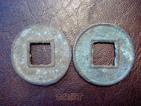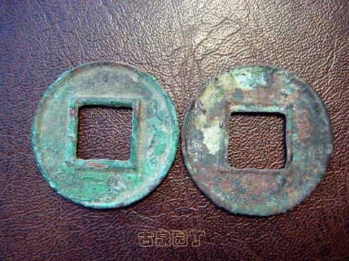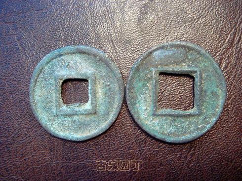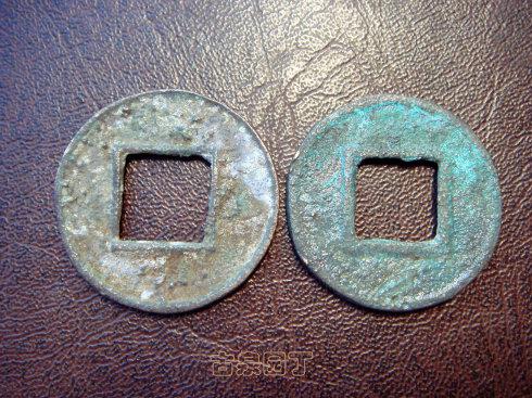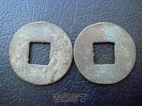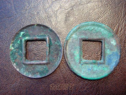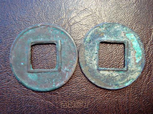 2、之后出现正面有轮无郭、背面有轮有郭的五铢钱;