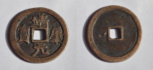 再是这个小平钱,直径2.2厘米,重5.84克。相比两个折三钱,小平钱的文字和品相就差了一些。但体现出了两个方面,一是靖康钱版别确实多,基本上是折三和小平。二是通过钱的品质可以看出北宋末年的社会状态。据史料记载:“因国事不安、社会动荡等原因,这个时期的钱币铸造业出现钱法混乱、管理松弛的现象,铸造的靖康钱质量普遍粗陋不精,铸量亦少得可怜”。但作为一个历史的见证物,其自身附带的历史价值就值得重视。
