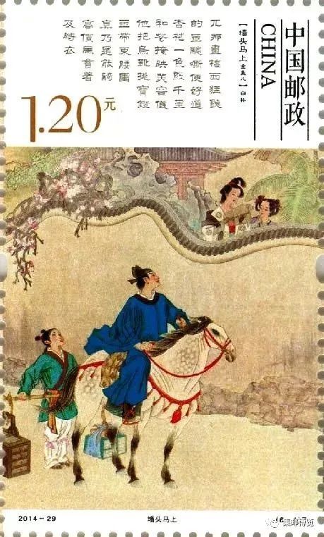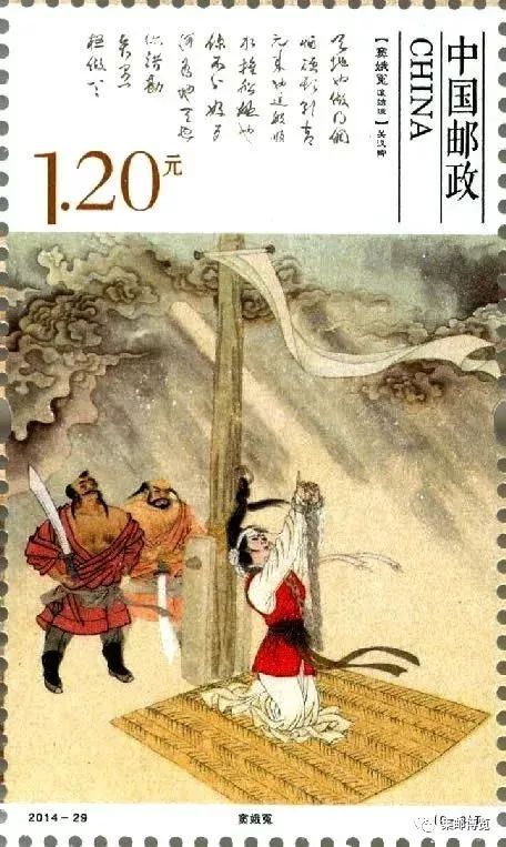 该套邮票拟分别表现元杂剧《窦娥冤》(关汉卿)、元杂剧《赵氏孤儿》(纪君祥)、元杂剧《倩女离魂》(郑光祖)、元杂剧《墙头马上》(白朴)、元散曲《山坡羊·潼关怀古》(张养浩)、元散曲《天净沙· 秋思》(马致远)。邮票设计形式典雅而大方,有着传统中国画的装裱意韵,彷如六幅绢本淡彩中轴条幅,天头宽、地头窄,天头题写的文字和画面相互照应,相得益彰,将中国风的传统形式美表现的淋漓尽致。