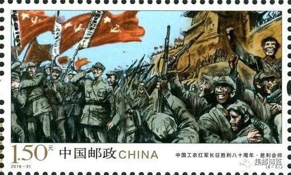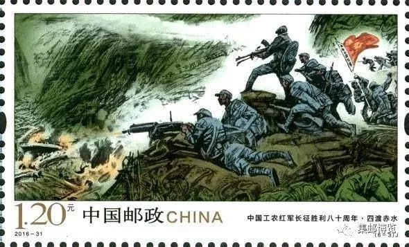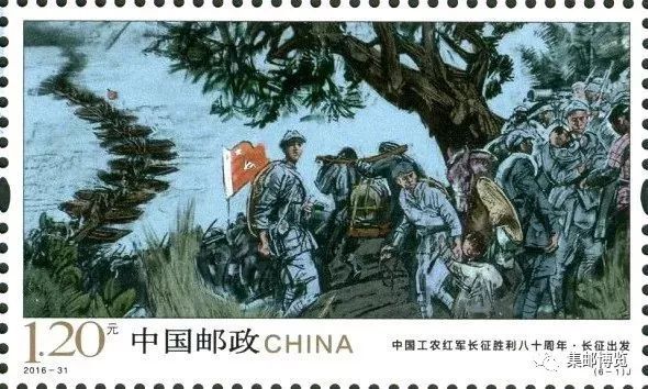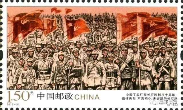 该套邮票设计者沈尧伊,以他对长征特别的情愫和浪漫主义的表现手法,展现了80年前中国工农红军长征的伟大壮举。邮票图稿设计写实和写意相结合,前景人物写实,使观者对历史场景产生直观感受;背景的房屋、高山、树木以及天空则为写意。