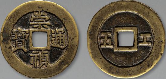 崇祯可以说是一个对当时局势有着非常清醒认识的皇帝。他登基后,勤俭自律、清心寡欲,付出全部的精力试图挽大厦于将倾,在铸币方面也有表现。《续文献通考》记载:“天启七年十二月,户工二部进崇祯新钱式,帝令每钱一文重一钱三分,务令宝色精采,不必刊户工字样。”
