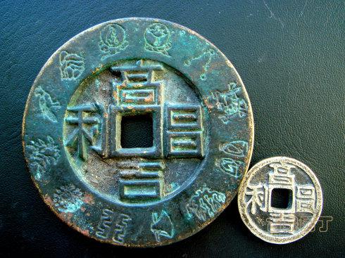 从退二线以后,就开始系列的研究钱币。很为自己没有高昌吉利钱币而惋惜。但是,去年我得到这两枚。