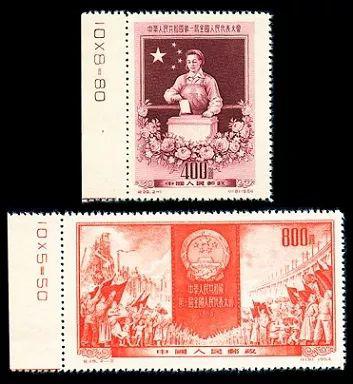 1954年12月30日发行的一套两枚的中华人民共和国第一届全国人民代表大会邮票。