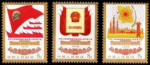 1978年2月26日,中华人民共和国第五届全国人民代表大会纪念邮票发行,一套3枚,分别为“高举毛主席的旗帜”“人民的宪法”“一定要实现四个现代化”。