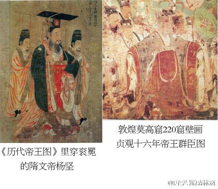 质疑派吐槽:人家《历代帝王图》里的皇帝,以及敦煌石窟贞观时代的帝王图,都端端正正穿着朝服,就你步辇图上李二搞外事礼仪活动居然一身幞头圆领袍的便装常服,啥德性!