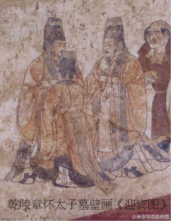 然后礼部官员也没规矩。看人家初唐章怀太子墓壁画里的迎宾官员,明明穿得很严肃!