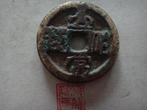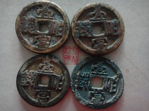 从这四枚钱来分析,厚板的应是母钱,个人分析材质含有贵金属,不是鎏金。同样厚板的边圆形的,即称鼓边形。整体沧桑感十足。在唐、五代十国时期有不少的钱的边为鼓形的。以上是个人简单分析,请泉友评鉴。