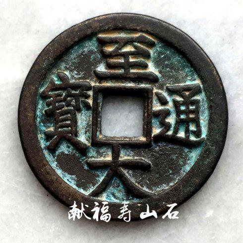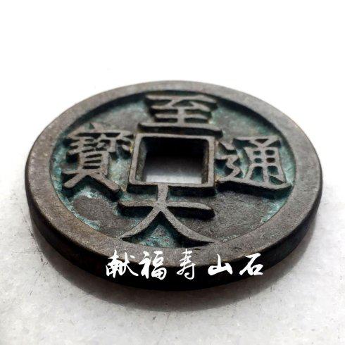 笔者今天展示的这枚折十“至大通宝”为铜质母钱,熟坑,制作精美、包浆醇熟、锈体犹存。是枚极其罕见的珍品钱币,钱经45MM、穿经9MM、厚4MM、重47克。