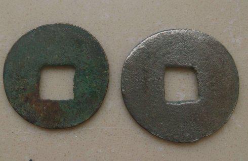 战国古泉:银质出谱品明四 日期:2018-03-08 明四是战国后期燕国之钱币,遗存不丰!笔者几十年集得银,铜各一品。 左泉诸谱有载 右泉为银质,是出谱品,直径29~29.5毫米 穿《对角》11毫米 重6克、此银质明四在12点处有一暗记。是古文字?还是炉记!特上博与同好分享! 作者:老浦东dxx