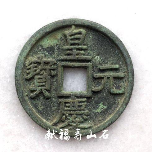 元仁宗皇庆年间(公元1312-1313年)铸有“皇庆元宝”,青铜质。此泉多为小平型,系官铸供养钱,此币铸期短存世罕少。