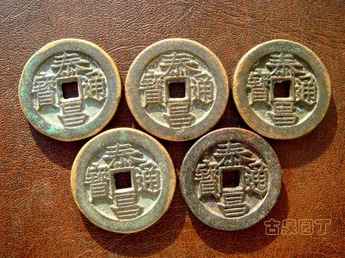 泰昌通宝小平存世远少于天启通宝,目前市场价格在150元左右,背星、月纹市场价格在500元左右,有一种“心泰”版,稀见,市场价格在6000元左右。