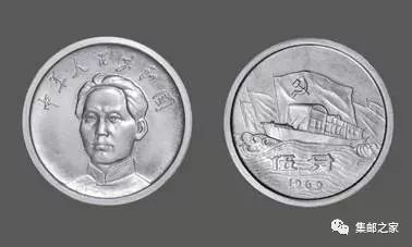 正面图案为毛泽东青年像(衣领下可见胸部),国号刻于头像上方。背面南湖船,年号1969,面值伍分;“南湖船2”二枚,正面图案为毛泽东青年侧面像,背面与“南湖船1”一致,年号1969,面值伍分。