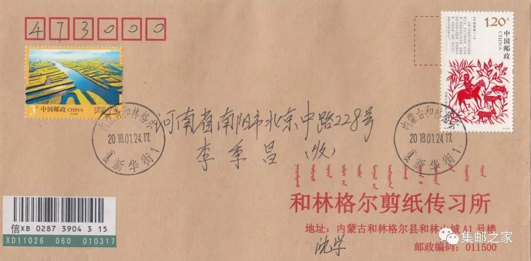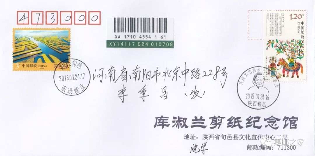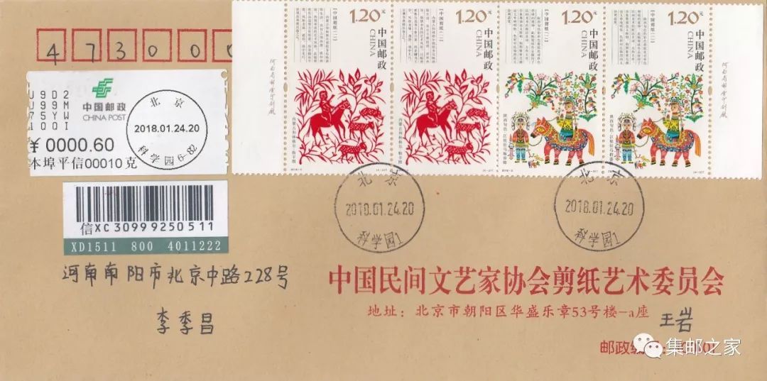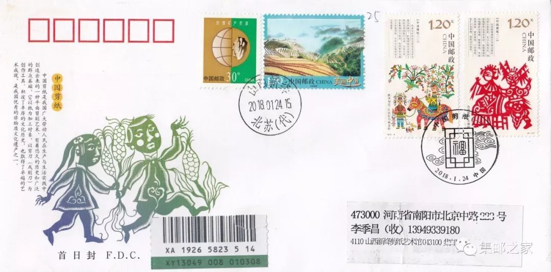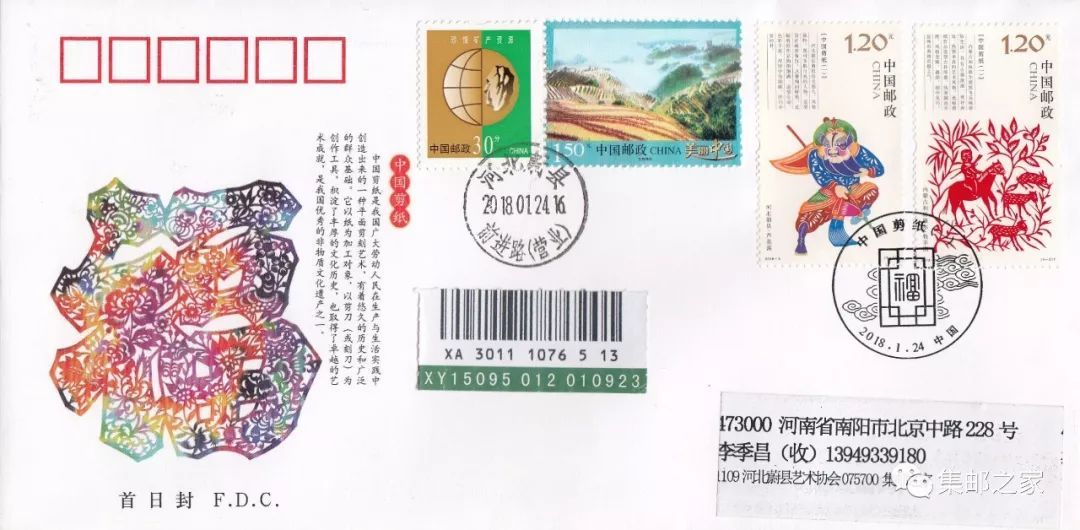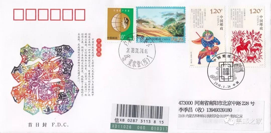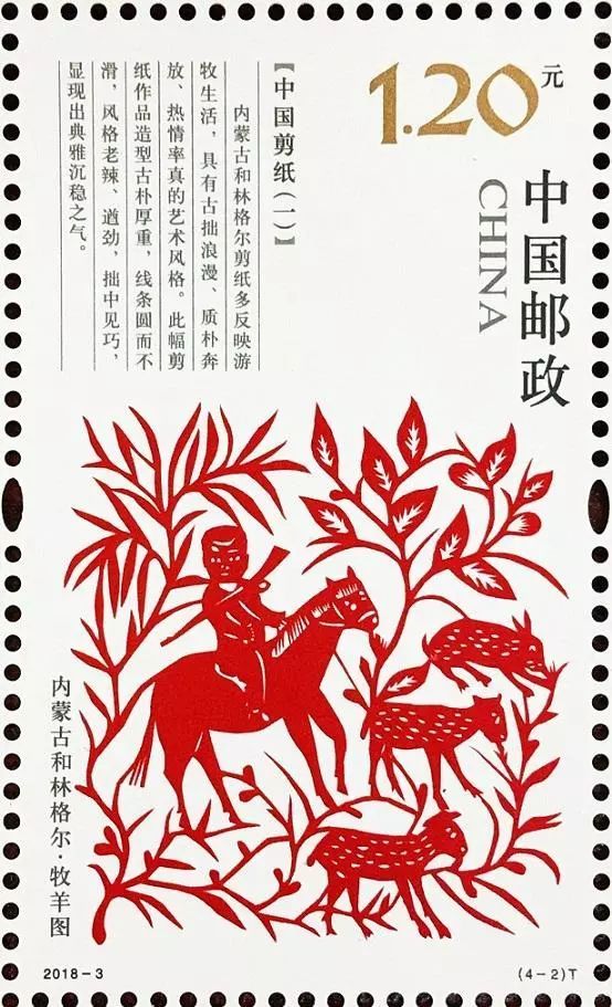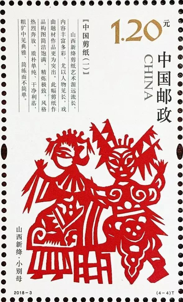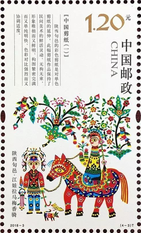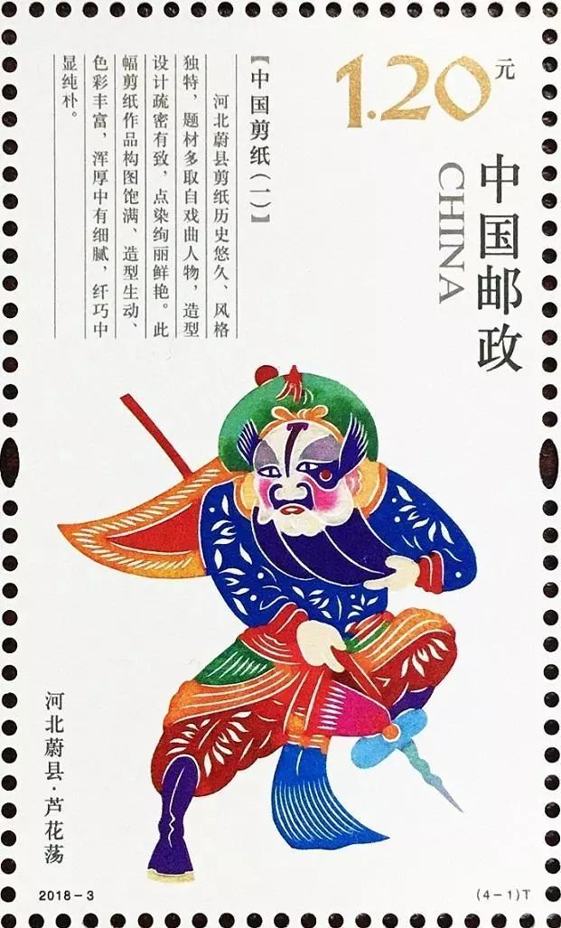 中国邮政于2018年1月24日发行《中国剪纸(一)》特种邮票1套4枚。