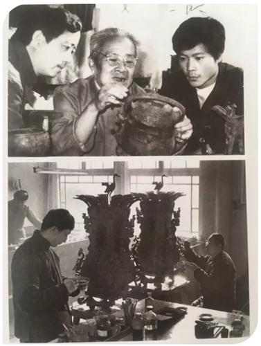从古铜张传人进入故宫后,故宫博物院通过“师承制”的方式培养了一批掌握传统修复和复制技术的专家,先后修复了包括班簋、齐史祖辛觯、司母辛鼎、二祀邺其卣、马踏飞燕等一大批国宝级文物,复制了莲鹤方壶、格伯鬲、兽面纹觚、兽面纹瓿、鸢祖辛卣、西周牛尊、西周荣簋等一系列重要文物。