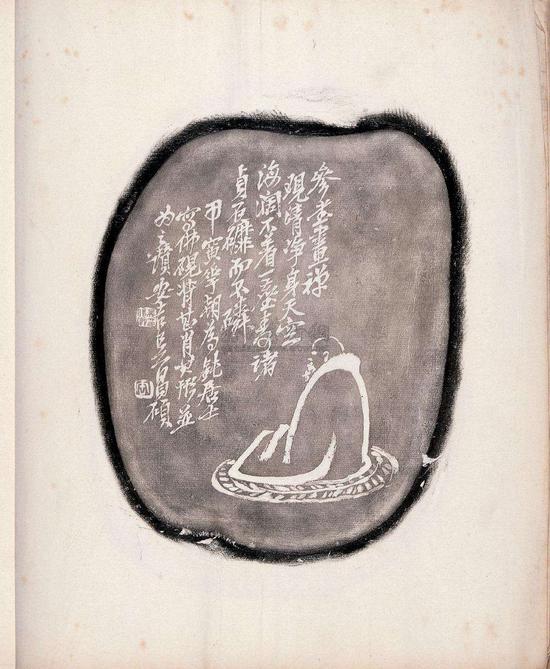沈石友(1858-1917),原名汝瑾,字公周。因喜石砚,取石友别号。江苏常熟人。晚清著名诗人,于金石书画无所不好,晚年尤专于砚。集砚百数十方,砚质端、歙、澄泥、洮河皆备,雕工则山水、人物、鸟兽、瓜果俱全。沈氏殁后六年,其子沈若怀将其所藏名砚158方集拓成谱,分为四册,名曰《沈氏砚林》。谱中之砚大多为吴昌硕铭书,赵古泥镌刻。缶老铭书或疾徐纵横,或潇洒超逸,正、草、隶、篆均能小中见大,一气贯注。赵氏镌刻亦堪称一绝,其深悟缶老妙理,手起刀落,莫不中肯,恪守迹象之外,却能独出神采。书刻俱绝,相映成辉,此乃《沈氏砚林》的最大亮点!