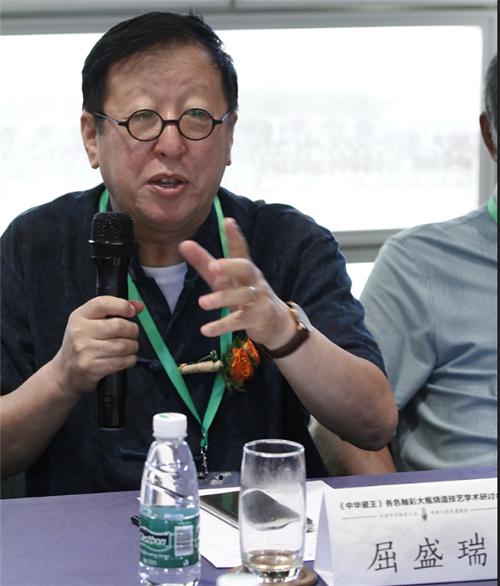 熊建军大师接受北京台记者采访《中华瓷王》所采用的釉上彩装饰技法有粉彩、珐琅彩、描金等;釉下彩装饰品种有青花,还有釉上彩与釉下彩结合的斗彩;所使用的釉有仿哥釉、松石绿釉、窑变釉等,从烧造工艺上看,高温釉、低温釉等需要同时进行,如此复杂的工艺,只有在全面掌握各种釉彩性能的情况下才能顺利完成,正是因为如此,主办方将全国五大名窑的九位非遗传承人集合到一起,攻破一个个工艺难关,共同完成了《中华瓷王》的烧制工作。