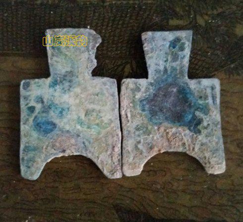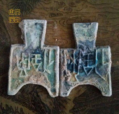 今日展赏的是两品战国中早期青铜布《彘釿》,青铜材质,圆裆、方足、平首,其形制属小型桥足布。两品《彘釿》桥足布皆生坑筒子而出,钱本遗藏于地下历 经两三千年,沧海桑田,大自然巧夺天工,给钱体裹馥上孔雀蓝、墨兰绿绣,美艳动人;两品版式不同但铸制都是异常精整。