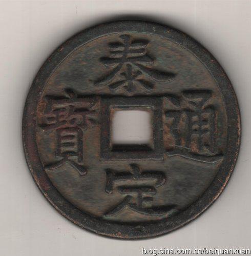 规格:46,4.0,9.0;36.05克。7, 泰定帝1324-1328年所铸泰定通宝折十铸母。