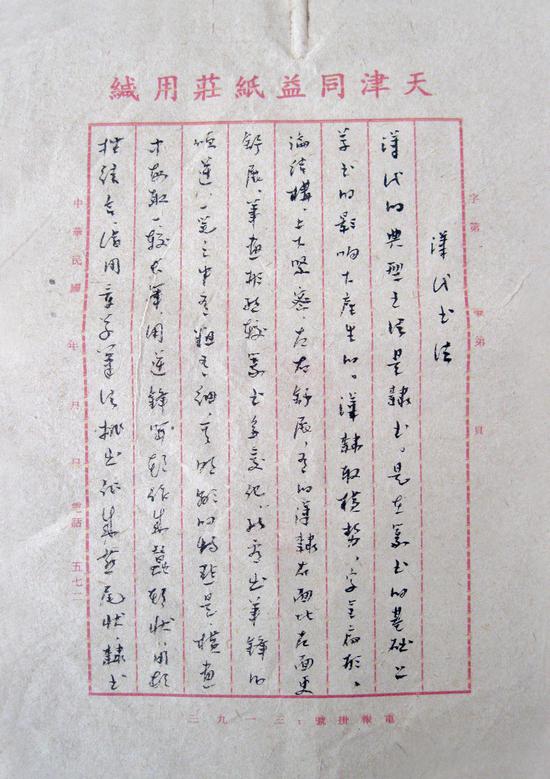 这是一篇何香凝撰写的《汉代书法》手稿译文。何香凝(1878.06.27-1972.09.01)系中国国民党革命委员会中央副主席、主席,中国国民党左派的杰出代表、著名政治活动家、画家。建国后,历任中央人民政府委员会委员,第二、三届全国人民代表大会常务委员会副委员长,第二、三届中国人民政治协商会议全国委员会副主席,中华人民共和国华侨事务委员会主任,中华全国妇女联合会第一、二、三届名誉主席,中国美术家协会主席等职。