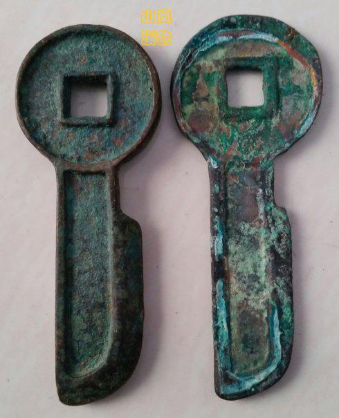 上图新莽币金错刀《一刀平五千》,两枚放置一块像是一对母子。