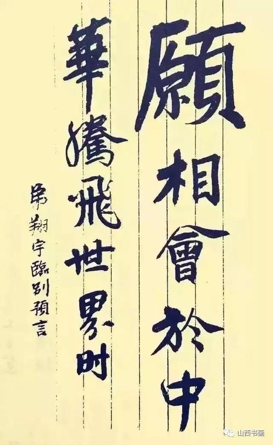给郭思宁的赠言一个大大的愿字,加上一句话中的大小、行楷区别错落,跌宕起伏,彰显着他自出机杼的书法审美追求。这其中,能够看到二王的痕迹,但魏碑的影响更大。