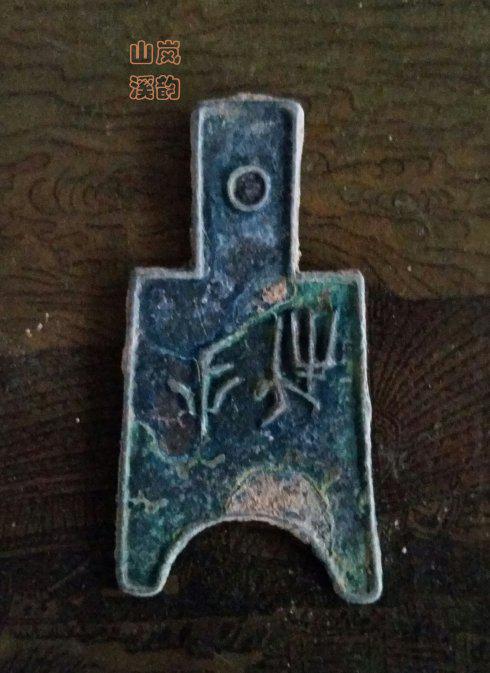笔者将所藏一品平首桥足青铜布《分布》遣上博来,予以展赏。此布铸制异常精整,钱面地章平整,外廓缘线流畅峻秀,钱首、钱穿、钱文、钱足,在钱面布局的黄金比例,看上去十分舒爽;币体裹馥生坑美绣,蓝绿斑斓,自然天成;钱文“分布”古篆书,把钱币转180度,首足倒置,自右而左读”分布”,笔画遒劲,流畅隽永。其币美制、美文、美绣,清爽靓丽,令人赏心悦目,堪称小型桥足布中的巅峰之作。这种小币值、小形制的平首桥足布,存世及其稀少,实属古泉珍品