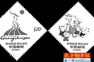2010年我国在上海成功举办世博会后,第16届亚洲运动会于同年11月在广州开幕。2009年6月30日,国家邮政局便提前为广州亚运会会徽与吉祥物特别发行了一套两枚的菱形邮票,为第二年广州亚运会一系列庆祝活动拉开序幕。到了2010年,国家邮政局在一年之内为广州发行了《珠江风韵·广州》、《广州2010年亚洲残疾人运动会》和《第16届亚洲运动会开幕纪念》三套邮票,以志纪念。