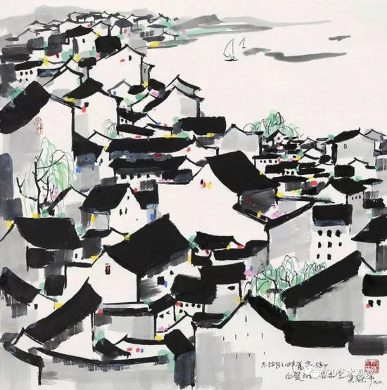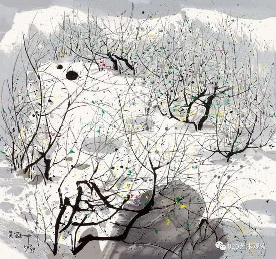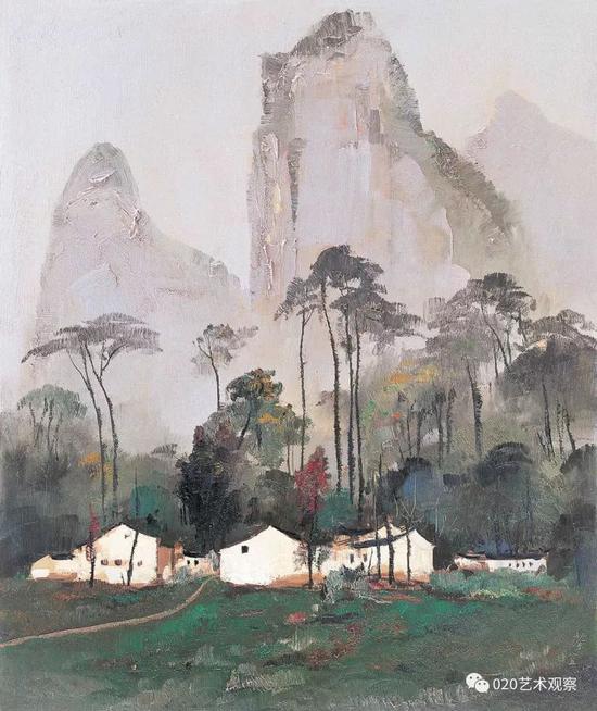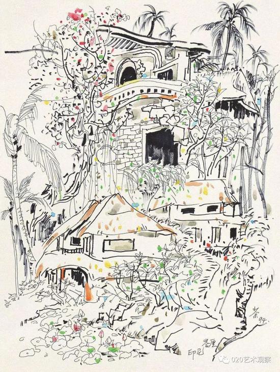 我长期写生水田。有一次从水田中观望四周田埂线的组织,很入画。我脱掉鞋站在水田中构思,感到站着所见不如坐下所见更稠密,但水田里无法坐下, 情急中便蹲着画,一味追求感受,顾不上久蹲之累。一条水牛在我近旁来回耙田,我突然感到它的耕耘与我的工作同工同职。它一生只是耕耘,待老了,人吃它的肉,将其皮制革,它奉献了全部所有。我老了肉不能吃,是废物,唯愿一生的作品能抵得上牛肉。是肉是垃圾,正待专家们、大众们鉴评。
