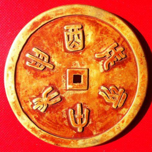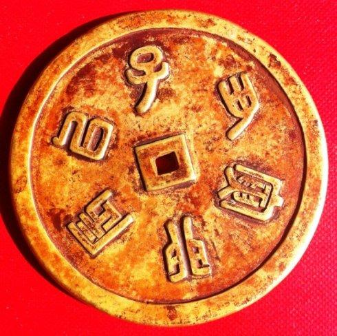 钱面阳篆古意盎然,遒劲雄浑。子钱的丑、巳,与午钱的午、亥等字篆法均取法于古印钤或古文,与宋元篆法有明显区别,这是辽代特有的篆书风格。从这十二个篆体字,就可以确认此金钱,确是辽代手工雕刻金钱真品。因为当代造假者包括他们身后的高人,笔者可以负责任宣称他们做梦也伪造不了这十二个篆字,因为它们个个都有出处,而且出处都冷僻难寻。除非他们是古篆文研究大师。