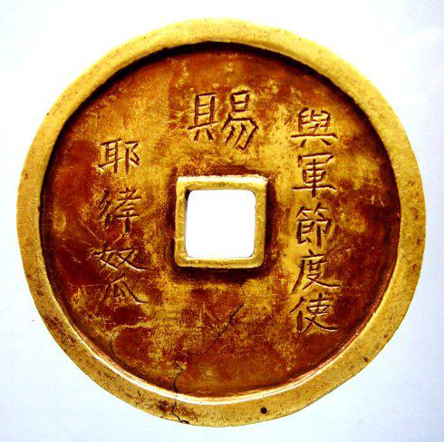 从耶律奴瓜以上的业绩看,他确实有资格获得承天太后和辽圣宗的两赐金钱,他被加为尚父亦是功德所归。契丹从太祖太宗开始,一向有赏赐臣下珍稀钱币的传统,《辽史·圣宗本纪》就记有承天太后称制的统和二十年十二月“奚王府五帐六节度献七金山土河川地,赐金币”的记载。所以“赐与军节度使耶律奴瓜”的首对金币(陈钱)确实应为承天太后赏赐的勿庸置疑,赏赐时间当在统和二十一年耶律奴瓜擒获宋高级将领王继忠后。第二对金钱(郭钱)应为辽圣宗开泰元年耶律奴瓜加尚父时赏赐。