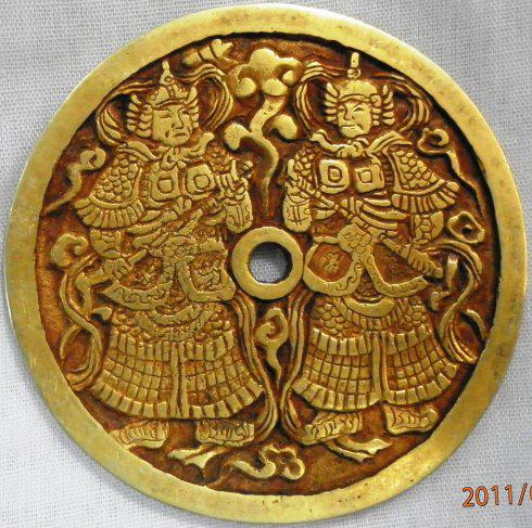 每个中国人都认识钱面上的人物,是鼎鼎大名家喻户晓的门神,唐朝大将秦琼(字叔宝)和尉迟恭(字敬德)。门神顾名思义就是守护宅门的神灵,是古代中国人想象出来的宅院保护神。用唐朝大将秦琼(字叔宝)和尉迟恭(字敬德)作门神,源于唐代关于太宗皇宫闹鬼的民间传说。