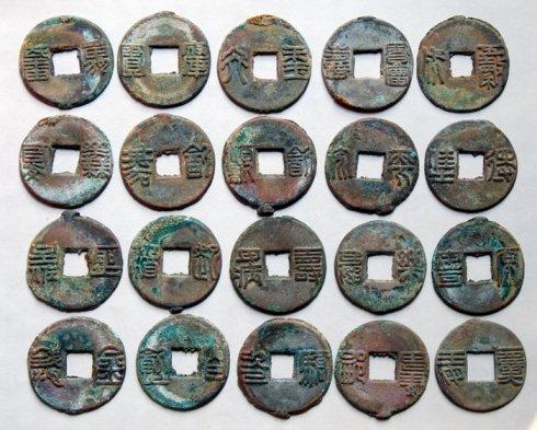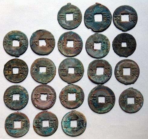 曾出土过“金缕玉衣”、“长信宫灯”、“错金博山炉”等著名器物的河北保定满城陵山,西汉中山靖王刘胜及夫人窦绾墓中,就出土了一套四十枚的酒令钱。其中有二十枚记数钱中,缺了“第三”,多了一枚“第十九”,且钱径为3.7cm,大于其它纪数钱。讲是四十钱,实际只能说是三十九钱。