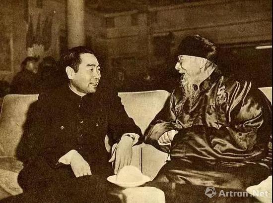 周恩来在齐白石九十三岁寿宴上同其促膝谈心