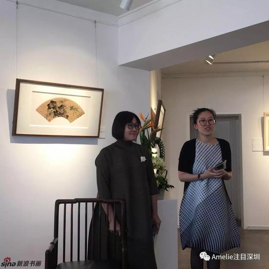 墙上挂着关山月、吴湖帆、陆俨少、宋文治、关良、程十发等名家的扇画。Amelie在站在这些画前,看到陈树人1928年的《花鸟》,陆俨少1949年的《鼓声渔笛在沧浪》,宋文治1965年的《秋日》,关山月1973年的《梅花》,还有程十发的《春风得意图》……