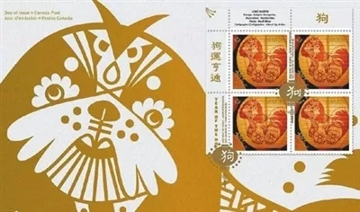 加拿大于1月15日发行狗年生肖邮票(图1)。负责设计的是Subplot Design Inc.设计公司,邮票插图是华裔图像设计师毛美美的作品,华裔设计师、安省勋章得主伍启荣则负责邮票上的书法字体。