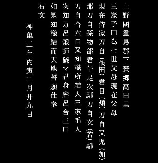 日本古代石碑群“上野三碑”是在2017年10月入选世界记忆名录的。 上野三碑是日本飞鸟时代至奈良时代前期兴建于今高崎市内的山上碑、多胡碑、金井泽碑的统称。这被认为是日本与来自朝鲜半岛的渡来人的交流证明,同样也是有关汉字、佛教等东亚文化推广的重要资料。