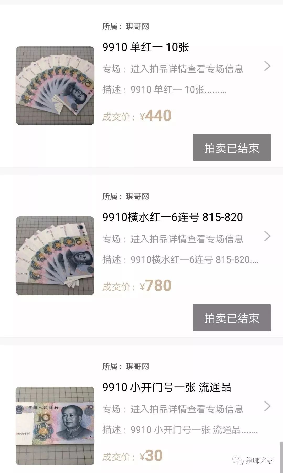 在央行宣布四版币退市以后,不仅四版币火爆,连三版、99版等纸币也收到了追捧,而9910受到了极高的市场关注度!在各大交易类网站上,成交频繁。但由于受冠号,数字、水印,品相等各种因素的影响,市场价格比较复杂。从十几到几百不等。根据小编目前了解,大部分品相尚可的普通9910目前价格在30元一张左右,翻了三倍。