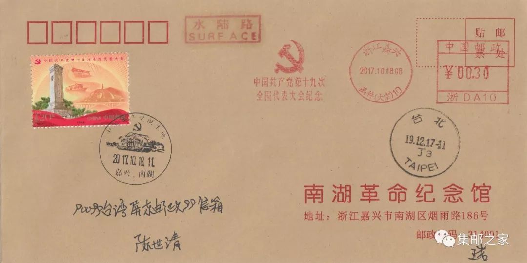他说,我设计的第1枚邮票图案以人民英雄纪念碑为主体,周围用松柏加以烘托,以表达“不忘初心,缅怀革命先烈”的寓意。图案背景上以新华门、嘉兴南湖红船和延安宝塔山代表中国共产党发展历史的不同阶段,并用曲折的暖色带把它们加以贯通,体现了中国共产党从诞生到今天的伟大历程。